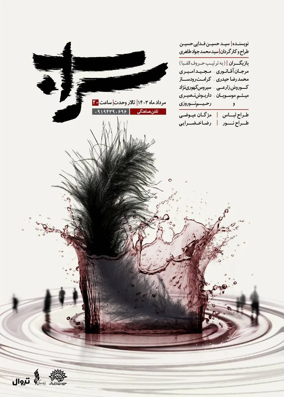 نمایش آیینیمذهبی «سراب»، به کارگردانی و تهیهکنندگی سید محمد جواد طاهری، با مشارکت بنیاد رودکی از ۷ مرداد در تالار وحدت به نمایش در میآید.