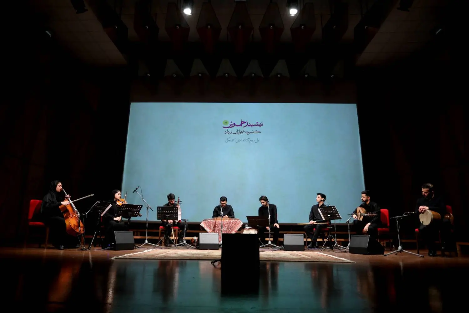 امیرعباس ستایشگر معاون آفرینشهای هنری بنیاد رودکی، بابک خضرایی رئیس دانشکده موسیقی دانشگاه هنر، پیمان سلطانی، حسام اینانلو، حسین علیشاپور، سیامک جهانگیری، امیر اثنی عشری، رضا علیآبادی، رامتین نظریجو، بامداد فلاحتی، آروین صداقتکیش، نازنین بدرثانی، سهیل حسنوی، مهدی یسری، محمدرضا عزیزی، سعید جهانی، منصور جمعهزاده، سپنتا حامدینژاد، پوریا فرجی و زمان خیری در این دو شب به تماشای کنسرت «ننشیند خموش» نشستند.