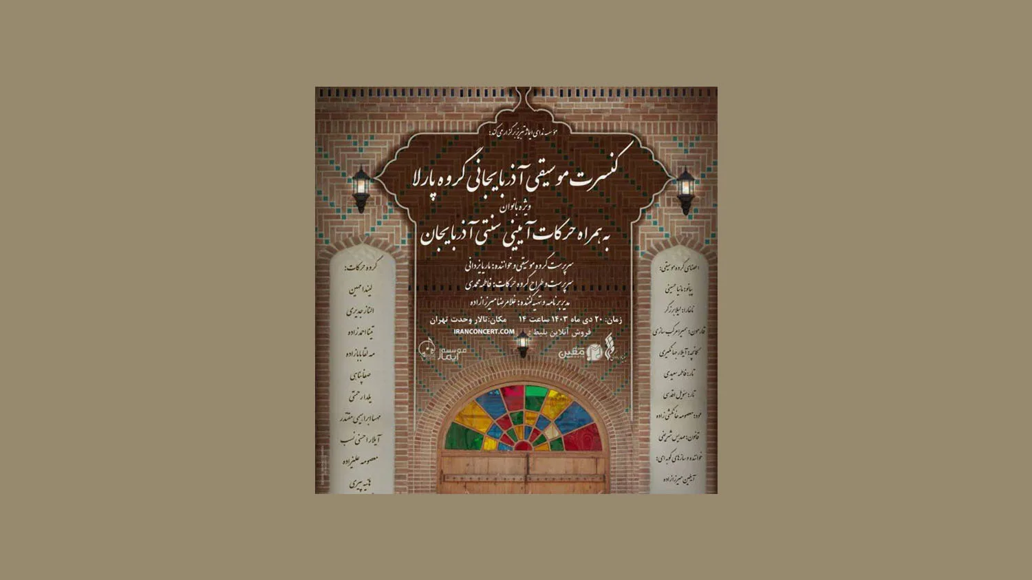 کنسرت موسیقی آذربایجانی گروه پارلا با همراهی گروه حرکات آیینی سنتی آذربایجان، ۲۰ دی ماه ویژه بانوان در تالار وحدت برگزار میشود.