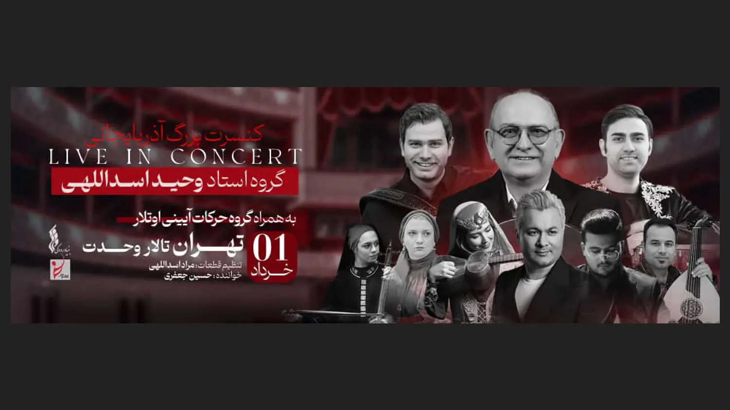 به گزارش روابط عمومی بنیاد رودکی، کنسرت وحید اسداللهی هنرمند آذربایجانی، با همراهی گروه حرکات آیینی اوتلار با اجرای حرکات فولکلور آذری برگزار میشود.