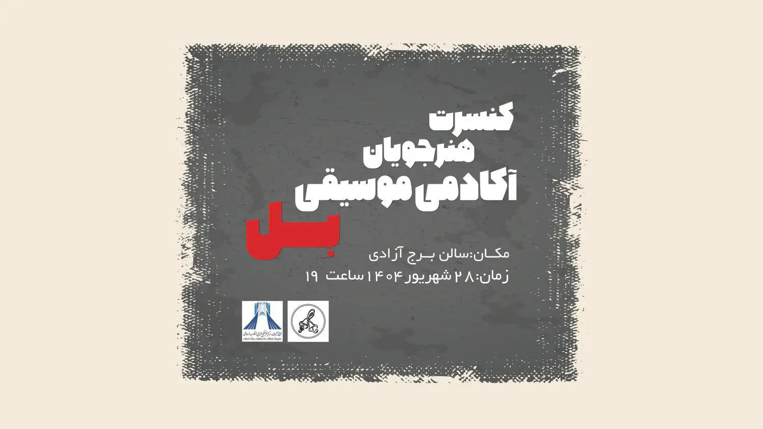 گروه آموزشگاه موسیقی” بل “به سرپرستی سینا ذکایی روز جمعه ۲۸ شهریور در سالن اصلی برج آزادی به روی صحنه میرود.