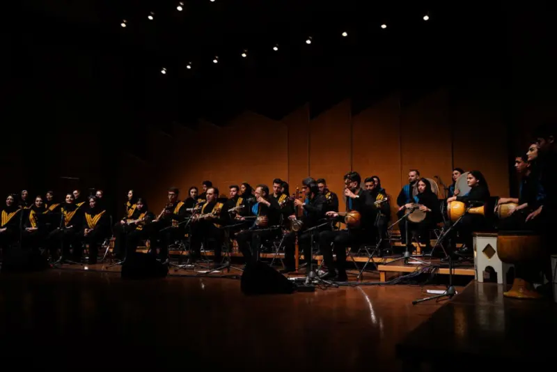 این گروه با حضور ترکیبی از نوازندگان سازهای ایرانی و کلاسیک و همخوانان متشکل از هنرجویان مرکز آموزش هنری این بنیاد، قطعاتی از موسیقی ایرانی را پیش روی مخاطبان قرار دادند.