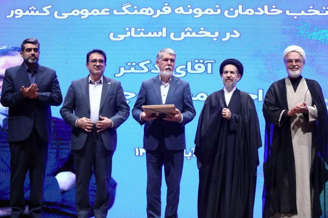 این آیین با قرائت پیام مسعود پزشکیان رئیس جمهور کشور توسط وزیر فرهنگ و ارشاد اسلامی و تجلیل از احمد مسجدجامعی و مرضیه وحید دستجردی دو خادم برجسته شورای فرهنگ عمومی کشور همراه بود.