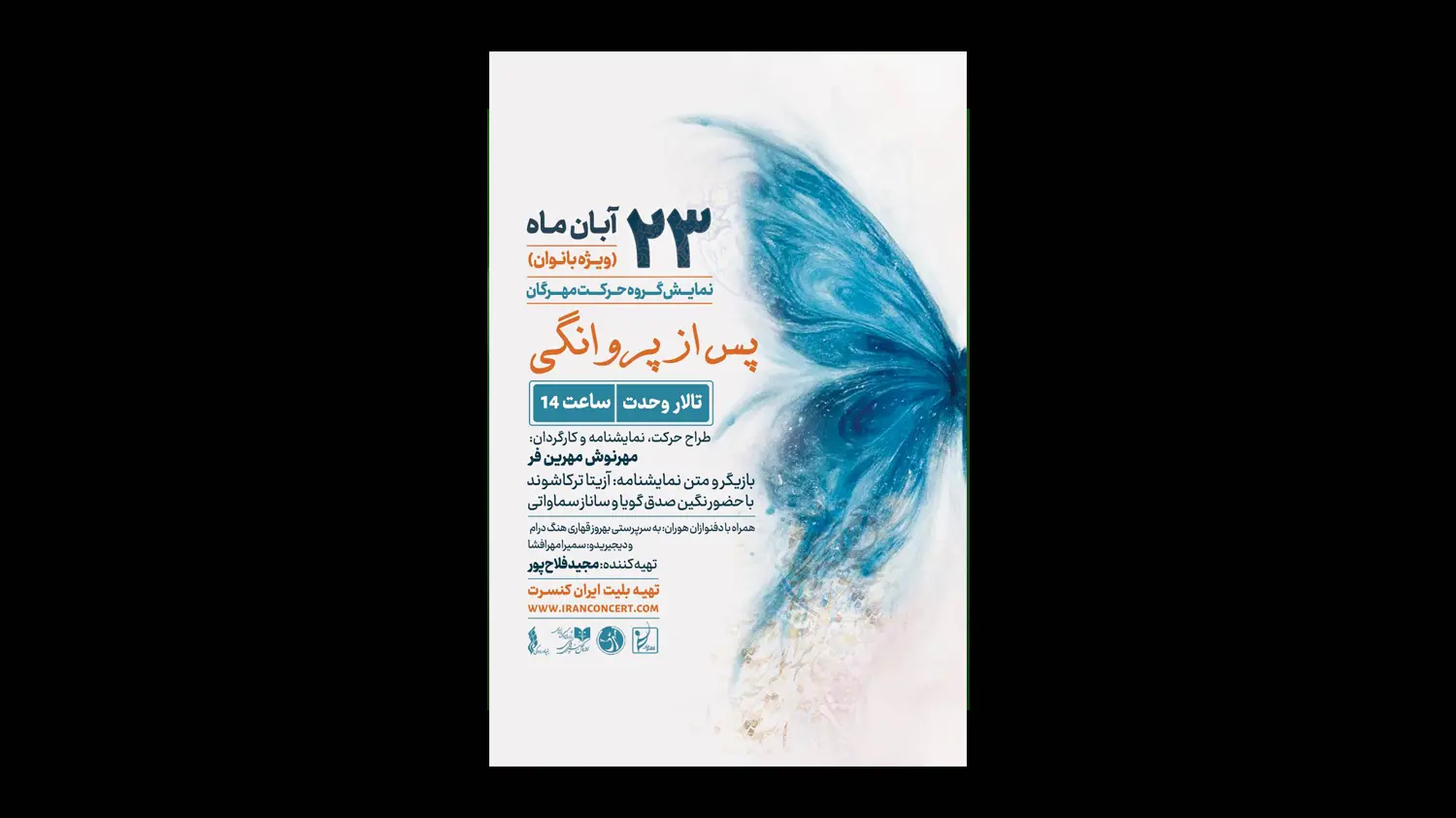 نمایش «پس از پروانگی» از ساعت ۱۴ روز جمعه ۲۳ آبان ویژه بانوان در تالار وحدت روی صحنه میرود و علاقهمندان میتوانند بلیت آن را از سایت ایران کنسرت تهیه کنند.