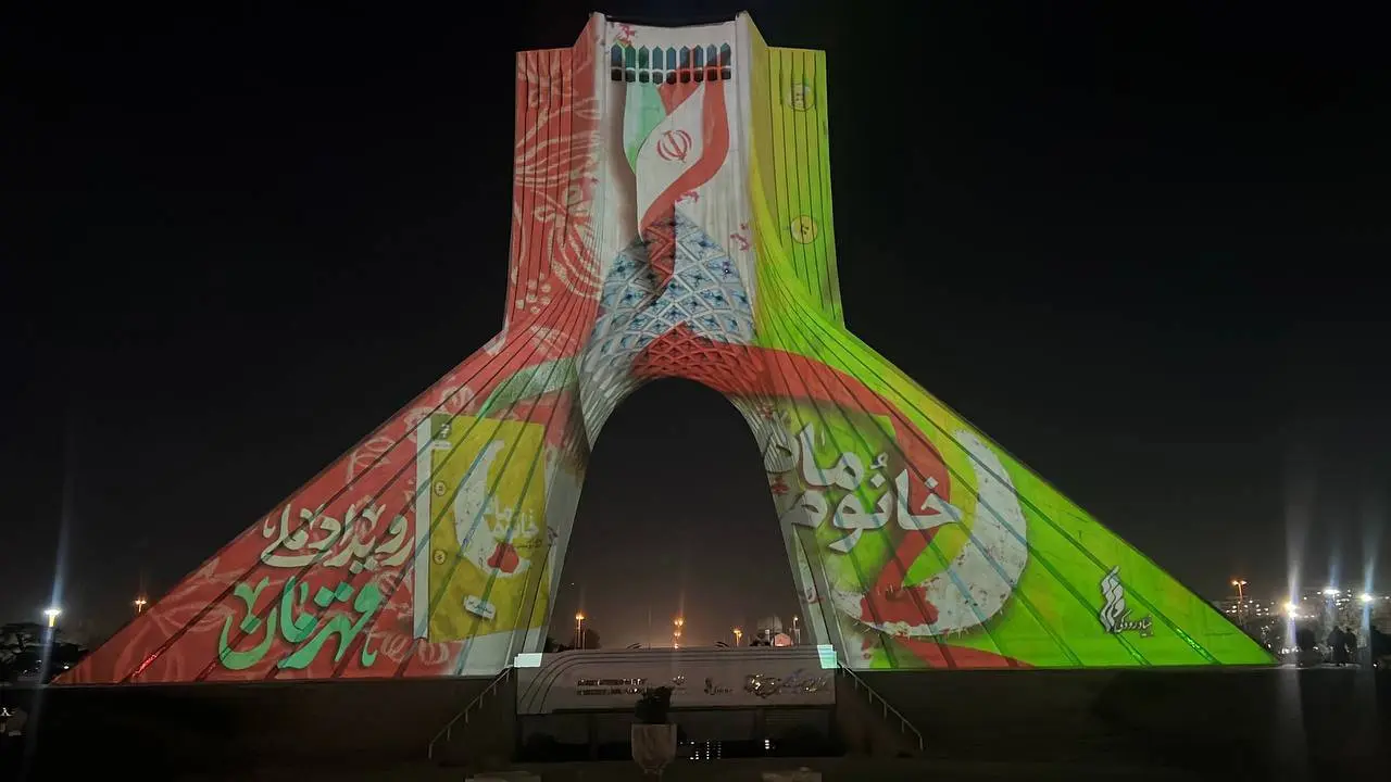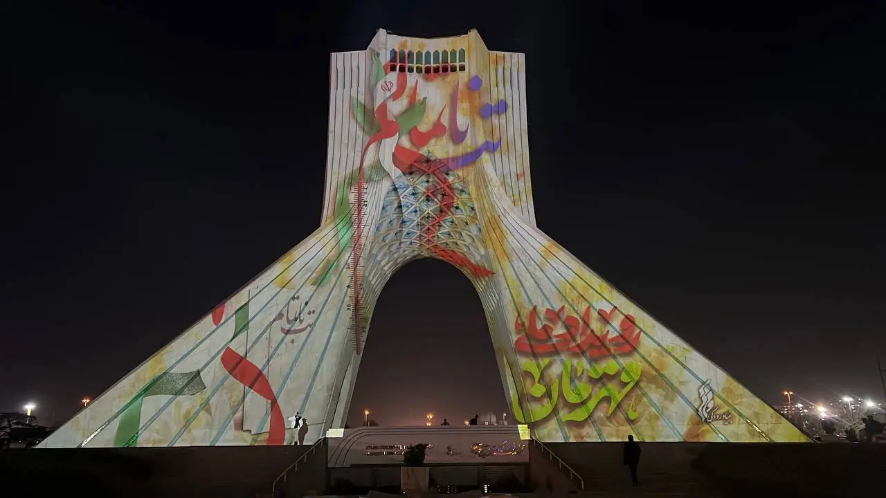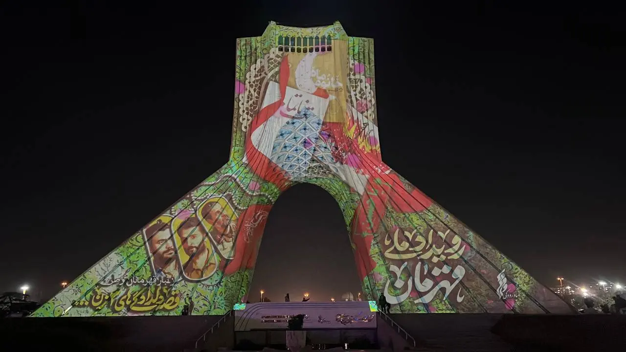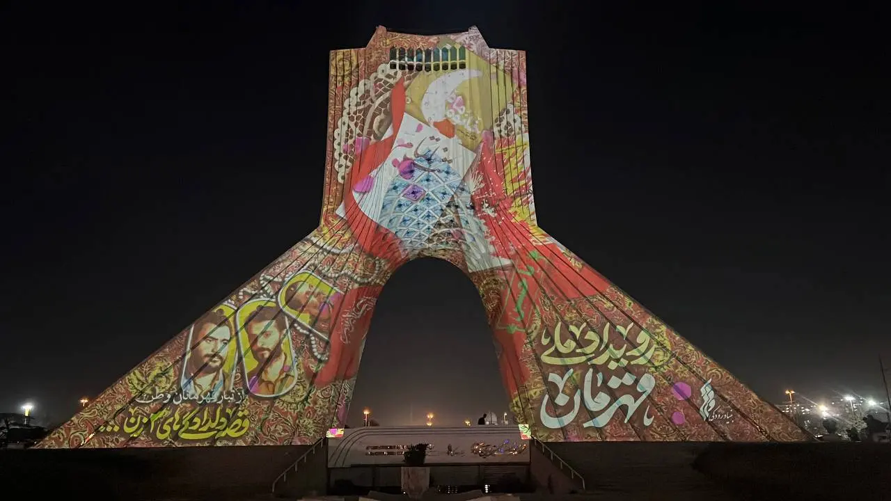 نقش «قهرمان» بر نمای برج آزادی