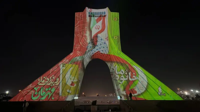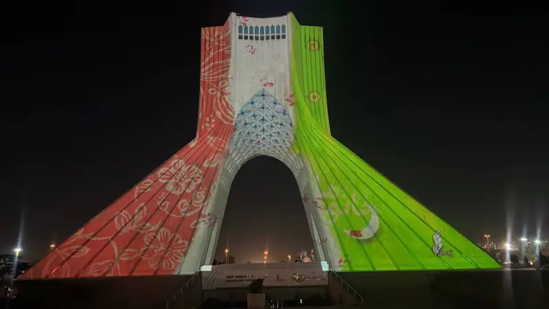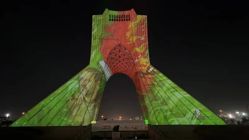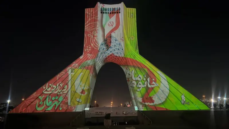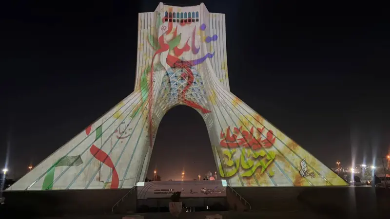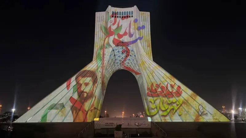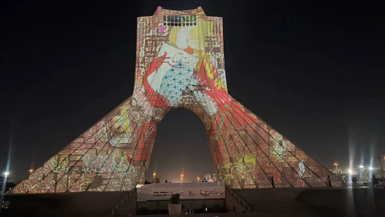 نقش «قهرمان» بر نمای برج آزادی