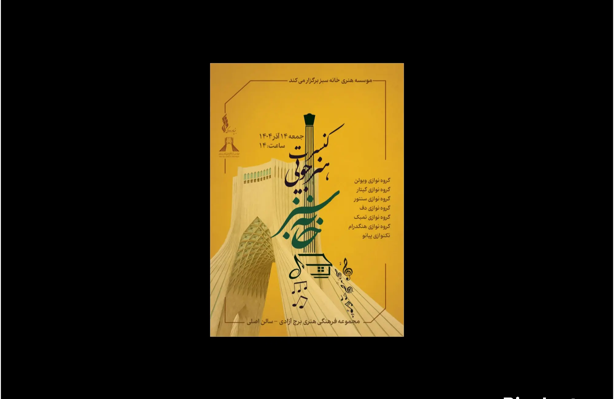 نخستین کنسرت و رویداد هنری آموزشگاه موسیقی مؤسسه هنری خانه سبز به مدیریت پیمان، پوریا و جواد بابائی، روز جمعه ۱۴ آذرماه ساعت ۱۴ در سالن اصلی برج آزادی روی صحنه میرود.