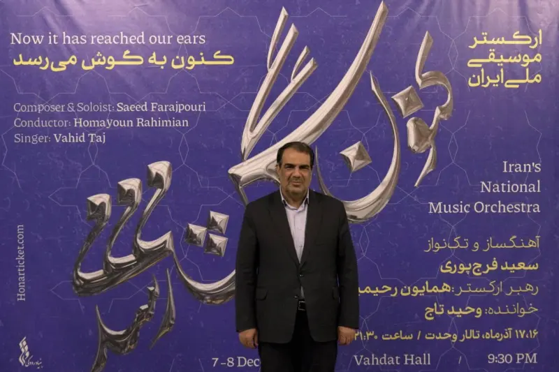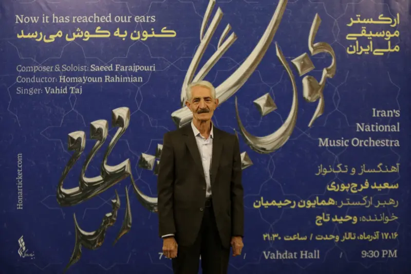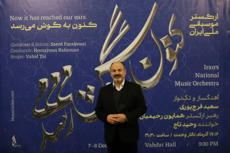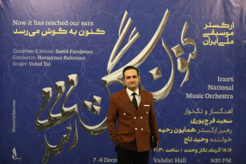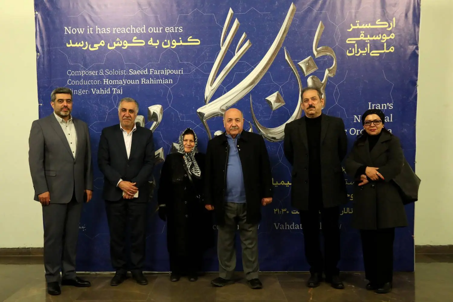 ارکستر موسیقی ملی ایران، ۱۶ و ۱۷ آذر ماه طی دو شب با رهبری همایون رحیمیان. آهنگسازی و تکنوازی کمانچه سعید فرجپوری و خوانندگی وحید تاج در تالار وحدت روی صحنه رفت.