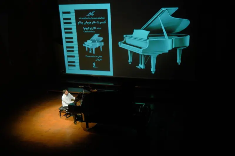 با اجرای قطعاتی از: آهنگسازان مشهور جهان همچون شوپن، موتزارت، باخ، بتهوون، راخمانینف و…