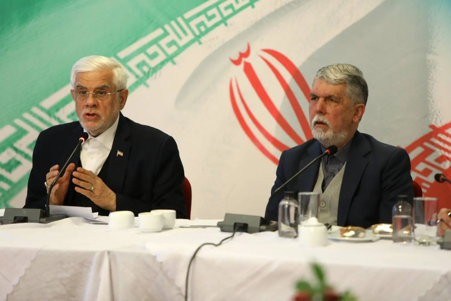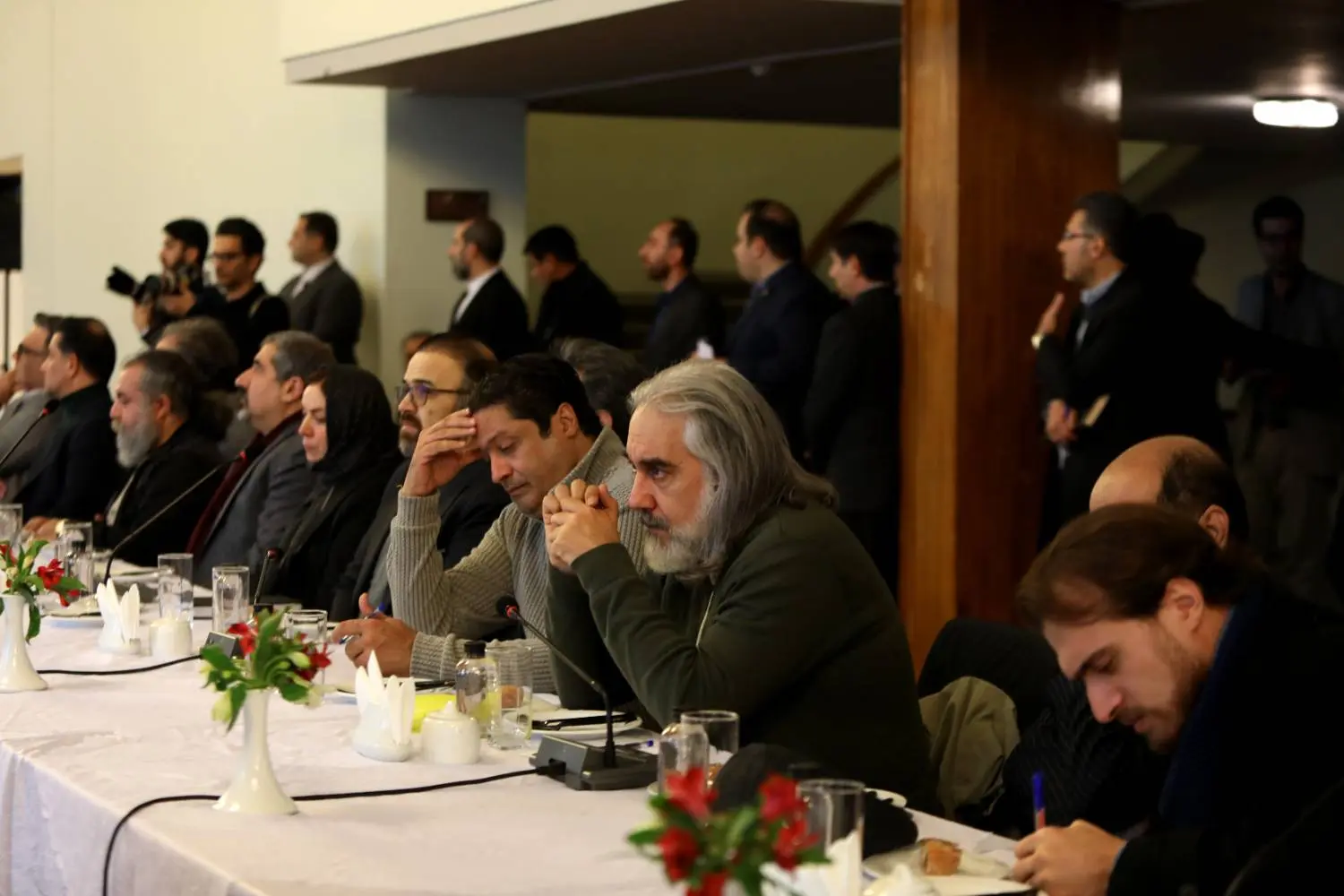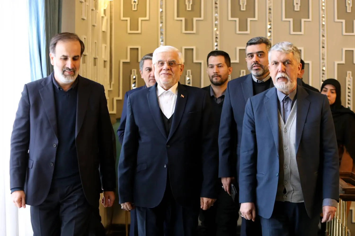 محمدرضا عارف معاون اول رئیسجمهور با همراهی سیدعباس صالحی وزیر فرهنگ و ارشاد اسلامی با جمعی از هنرمندان موسیقی، تئاتر و هنرهای تجسمی دیدار و گفتگو کرد