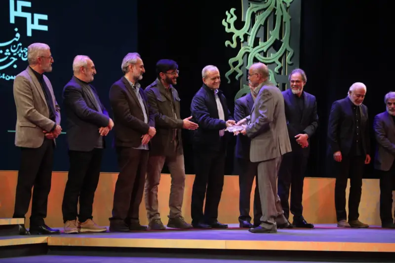 آیین اختتامیه چهلوچهارمین جشنواره ملی فیلم فجر با حضور مسعود پزشکیان رئیس جمهور، سید عباس صالحی وزیر فرهنگ و ارشاد اسلامی، مدیران، دستاندرکاران جشنواره و هنرمندان برگزار شد