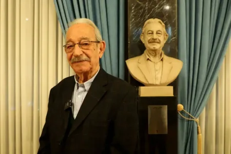 At this event, Morteza Arian, the sculptor of the bust, provided an explanation about the work, stating: “This bust is made of artificial stone (glazed concrete), and I hope it befits the stature of this esteemed master.”