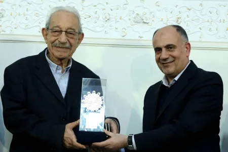 During the ceremony, Mohammad Allah-Yari Foomani presented a certificate of appreciation and a gift to honor Hasan Riahi for his lifelong artistic endeavors in elevating the art of music.