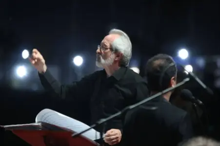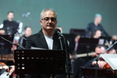 The Iran National Music Orchestra, conducted by Homayoun Rahimian, took the stage on its opening night as part of the Second National Congress of Gilan Province’s 8,000 Martyrs.